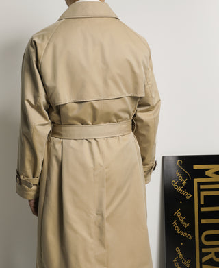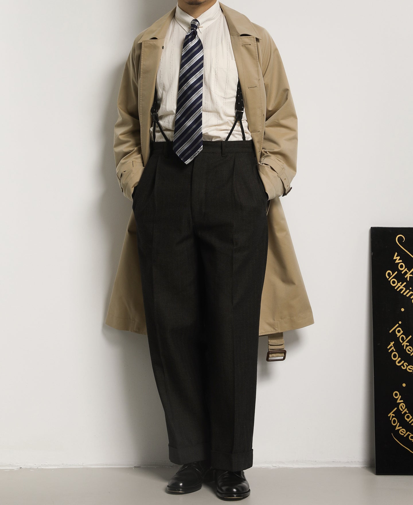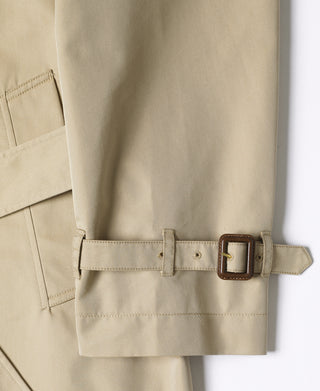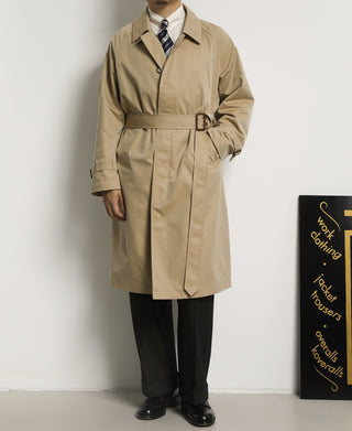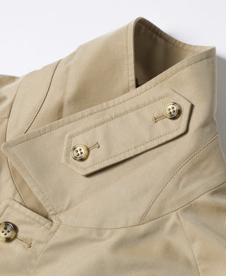 This classic Balmacaan coat features a relaxed fit that is both lightweight and stylish. It includes a curved support collar with a wind-blocking under-collar flap, leather-covered cuff fastener buckle, a hidden button placket, and a rear vent for added mobility. Crafted from custom-woven, high-density two-tone Tamamushi twill fabric, it’s treated with an Archroma coating, offering protection against splashes and light rain. A timeless choice for everyday wear.