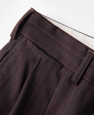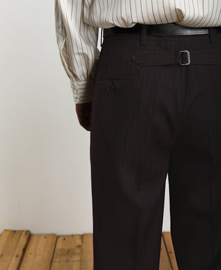 Inspired by 1940s tailoring, these two-tuck wool-blend slacks feature pleats placed closer to the side seams, creating a wider, more structured silhouette. The relaxed cut, high waist, and loose legs reflect the era’s focus on comfort and classic proportions. Interior buttons allow for optional suspender use, staying true to vintage style. The outer pleats add a sharp, layered look, while the roomy legs create natural movement and a refined, easy feel.