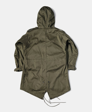 The M-1951 (or M51) Parka, commonly known as the fishtail parka, was designed by the US Army during the Korean War to cope with severe cold weather, replacing the M-48 Parka. Early M-51 Parkas were made of heavy cotton sateen fabric, providing a thicker and more durable layer. The distinctive fishtail design allowed soldiers to tie the parka around their legs for added cold-weather protection. Additionally, the M-51 Parka could accommodate a wool liner on the inside for extra warmth.