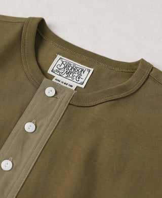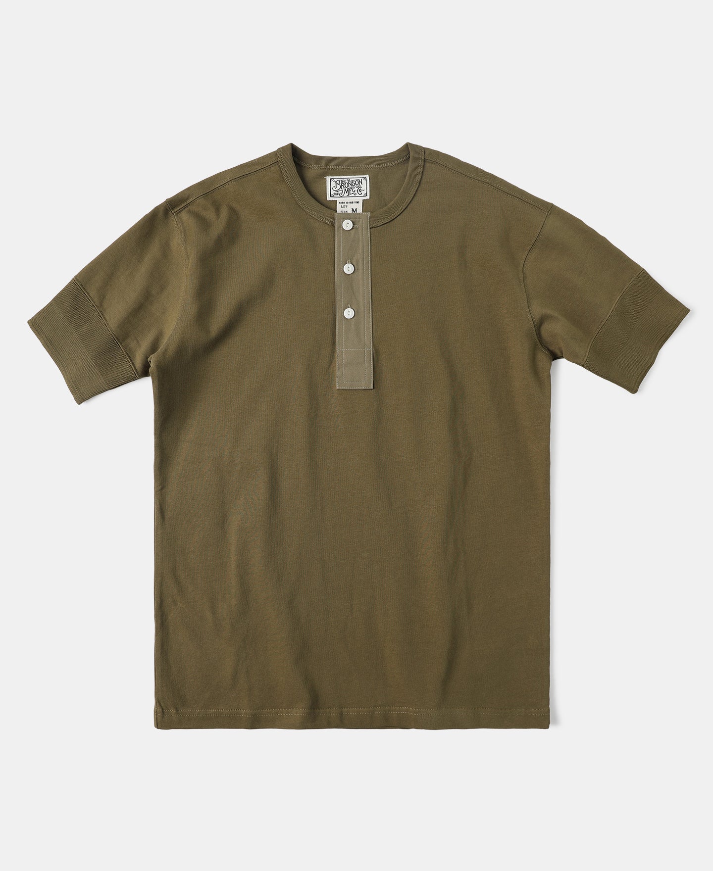 • This henley T-shirt is based on a vintage henley t-shirt from the 1880-1920s, which features a wide front placket and threaded cuffs. It is made of heavyweight 9.7 oz. cotton fabric, which offers a textured feel and comfortable wear, is comfortable to wear. Over time and with repeated washes, it develops a more retro look, adding to its charm.