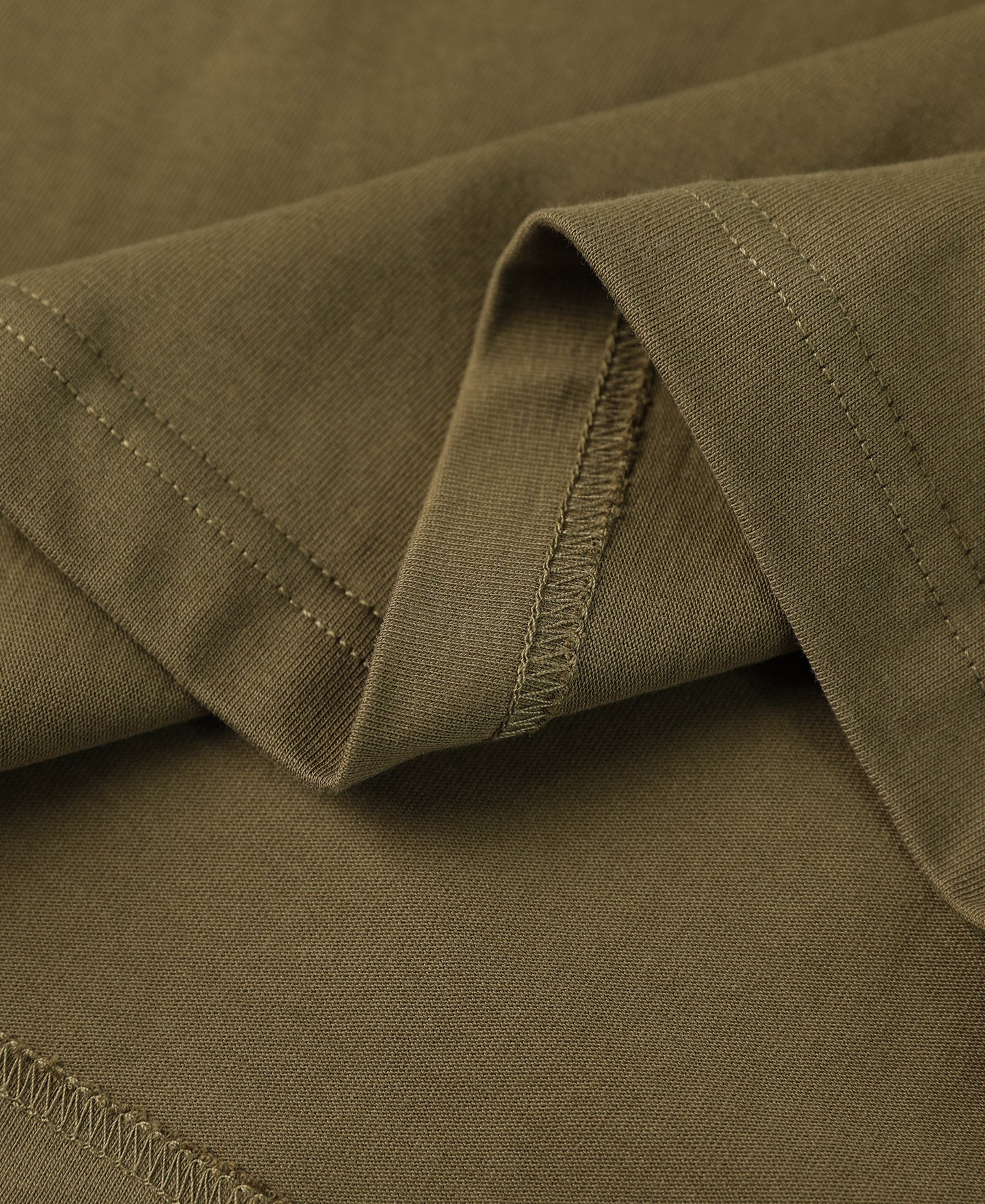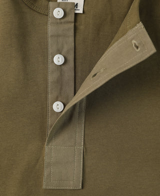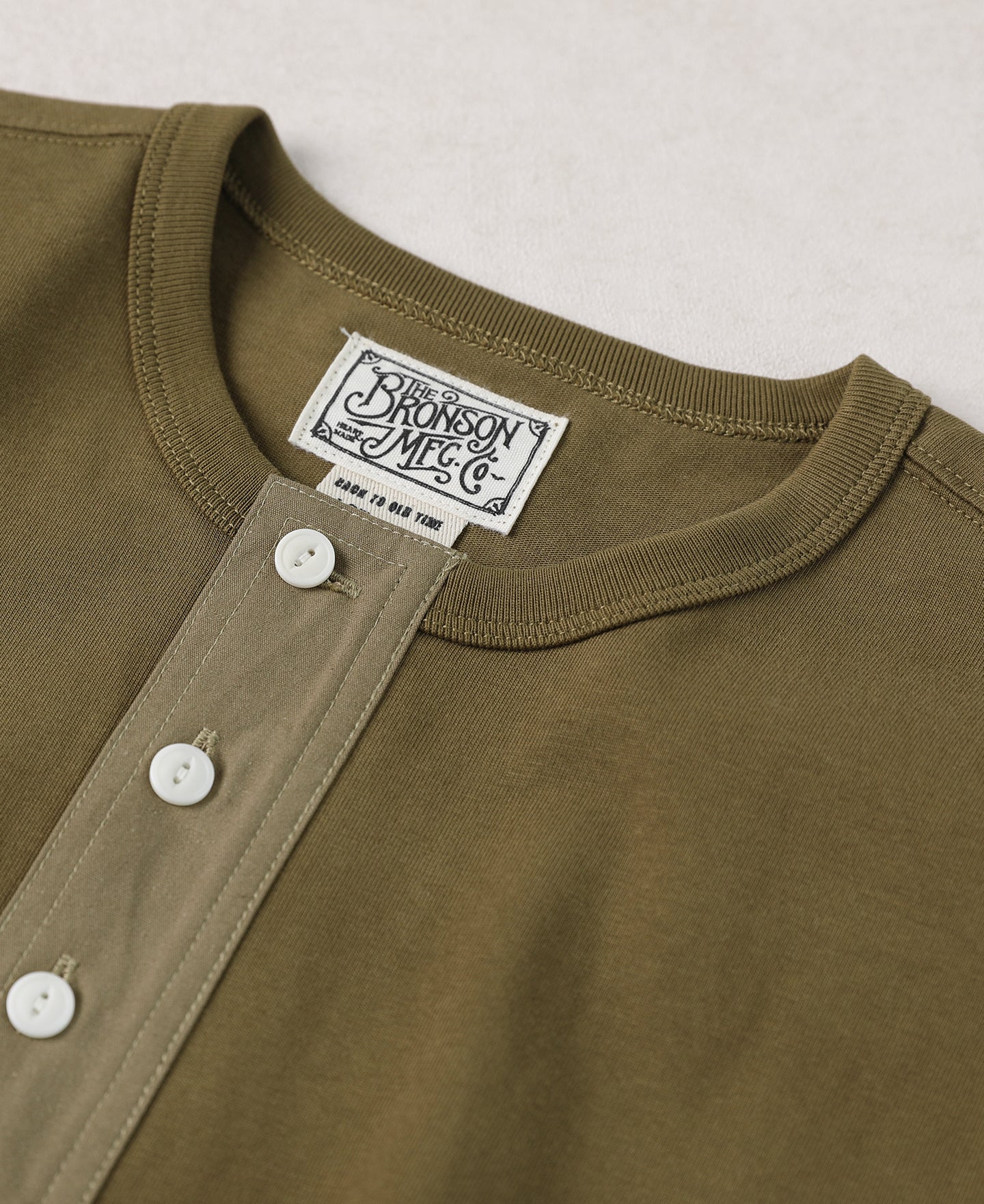 This henley T-shirt is based on a vintage henley t-shirt from the 1880-1920s, which features a wide front placket and threaded cuffs. It is made of heavyweight 9.7 oz. cotton fabric, which offers a textured feel and comfortable wear, is comfortable to wear. Over time and with repeated washes, it develops a more retro look, adding to its charm.