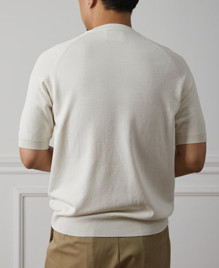 This short-sleeve Henley T-shirt is made from 100% viscose knit yarn, giving it a thick, premium feel without being stuffy to wear. The tailored cut subtly shapes the waist, and the redesigned ribbed collar adds a refined twist to the classic henley neckline.