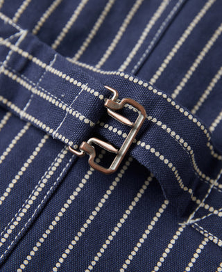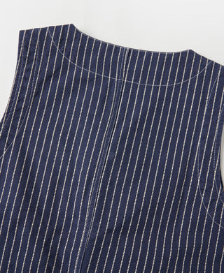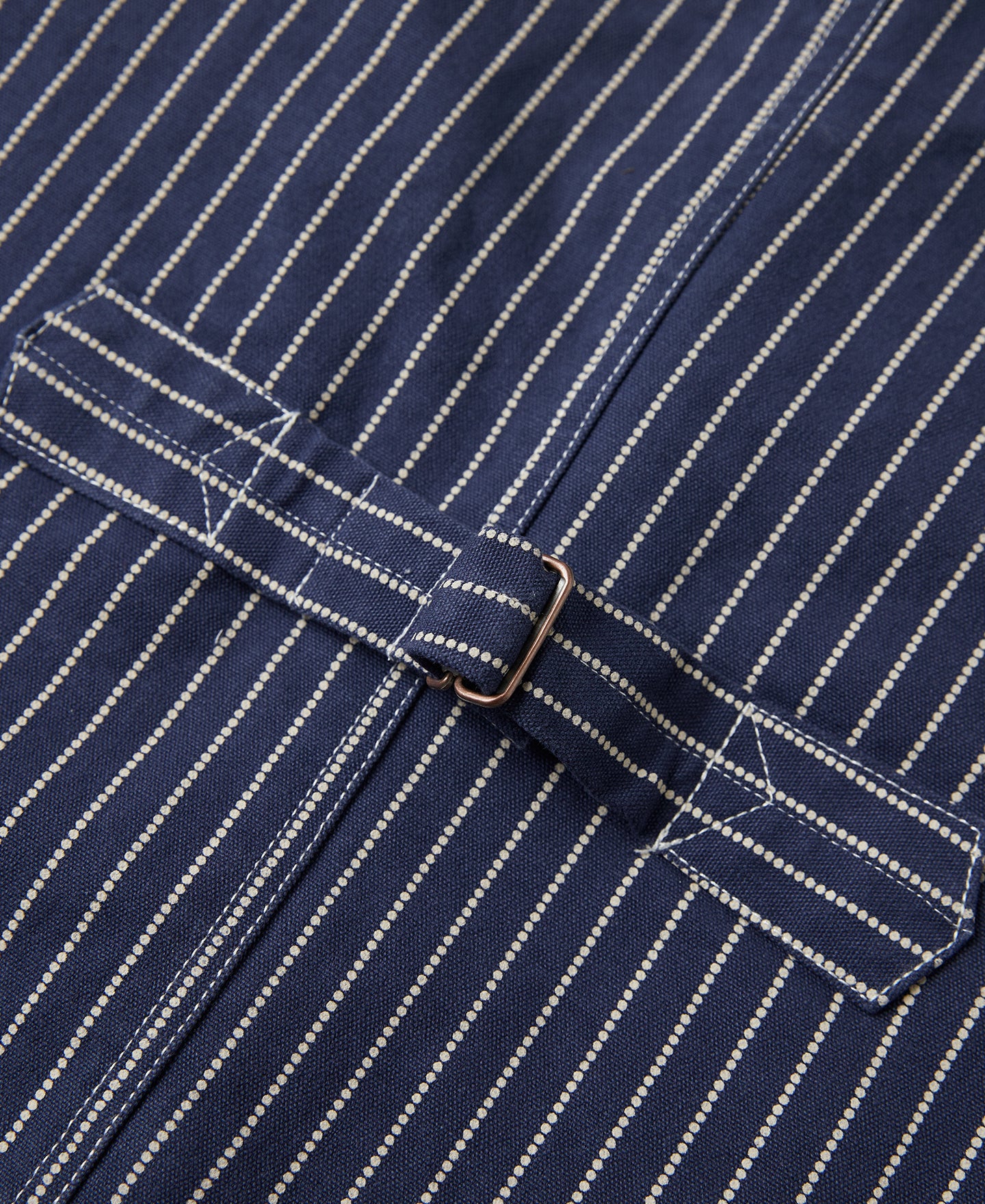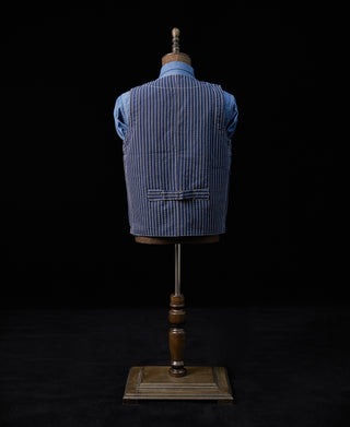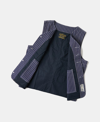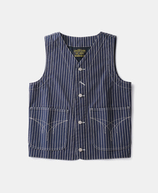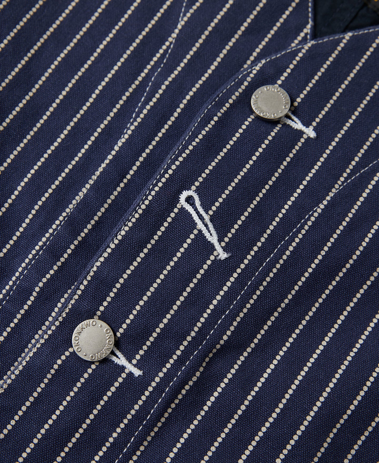 This workwear-inspired vest is made from 12oz high-density canvas. The fully lined interior, double-layered design features a V-neck and two waist patch pockets adorned with embroidery details. The back includes a signature adjustable buckle for a functional and timeless look.
