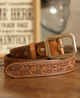 Western Tooled Leather Belt - Brown